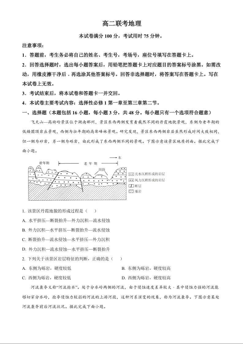 贵州省黔东南苗族侗族自治州2024-2025学年上学期高二年级期中联考地理(原卷版)