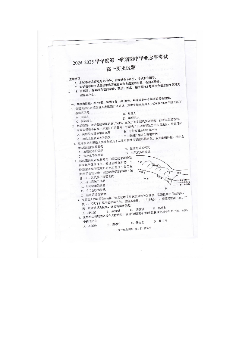 江苏省盐城市东台市2024-2025学年高一上学期期中学业水平考试历史