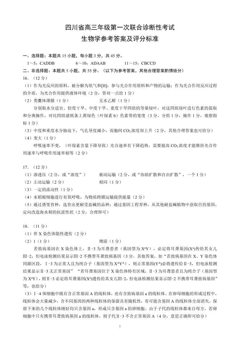 四川省成都市区域名校2025届高三上学期第一次联合性诊断性考试生物答案