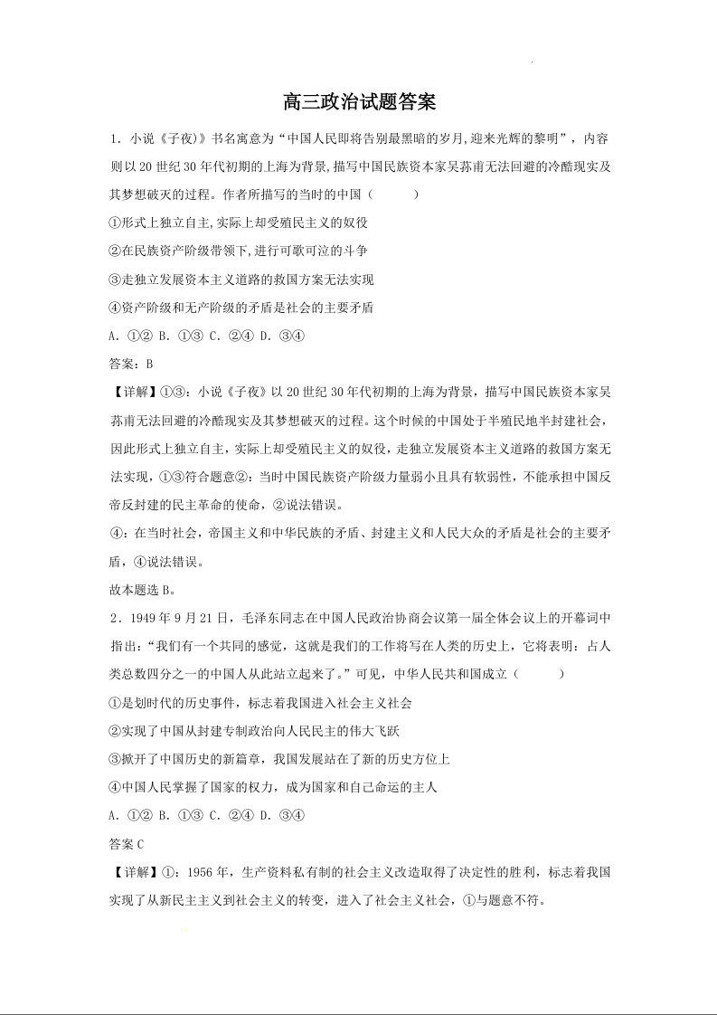 黑龙江省佳木斯市第八中学2025届高三上学期12月月考政治答案