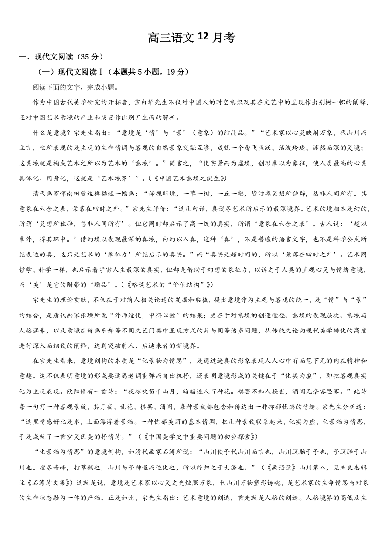 吉林省通化市区域高中2025届高三上学期12月月考语文Word版含答案