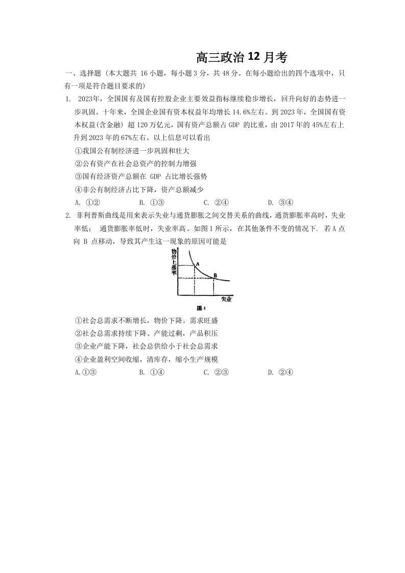 吉林省通化市区域高中2025届高三上学期12月月考政治Word版含答案