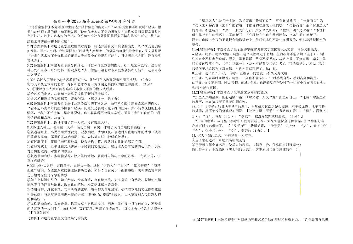 宁夏回族自治区银川一中2025届高三上学期第四次月考语文答案