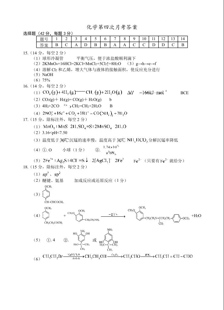 宁夏回族自治区银川一中2025届高三上学期第四次月考化学答案