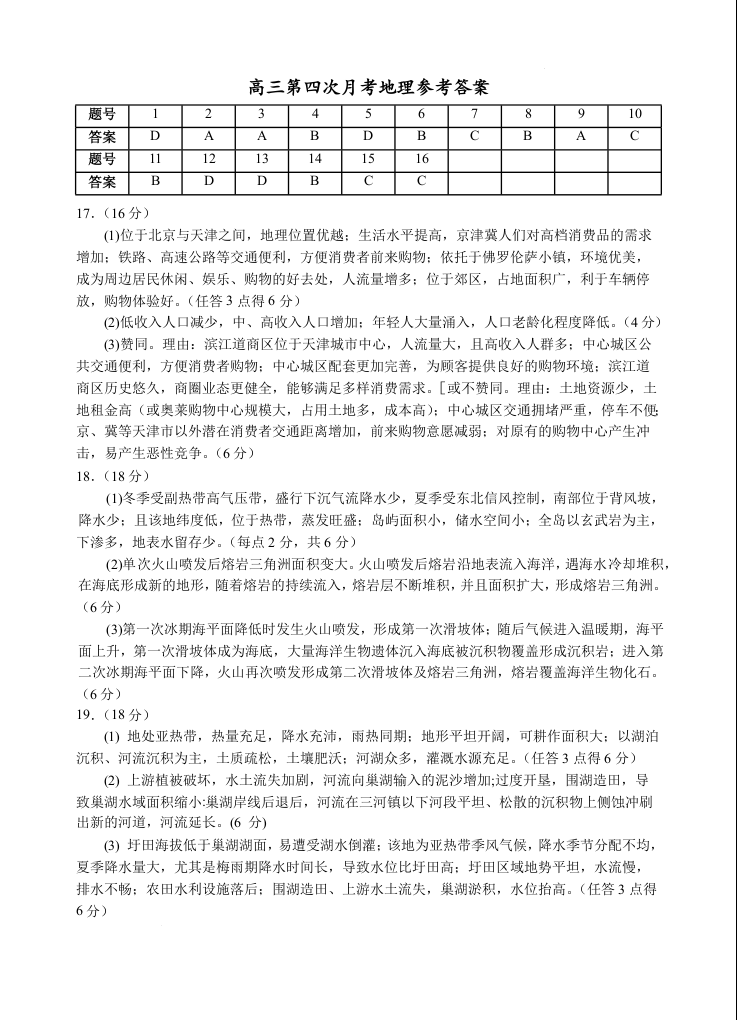 宁夏回族自治区银川一中2025届高三上学期第四次月考地理答案