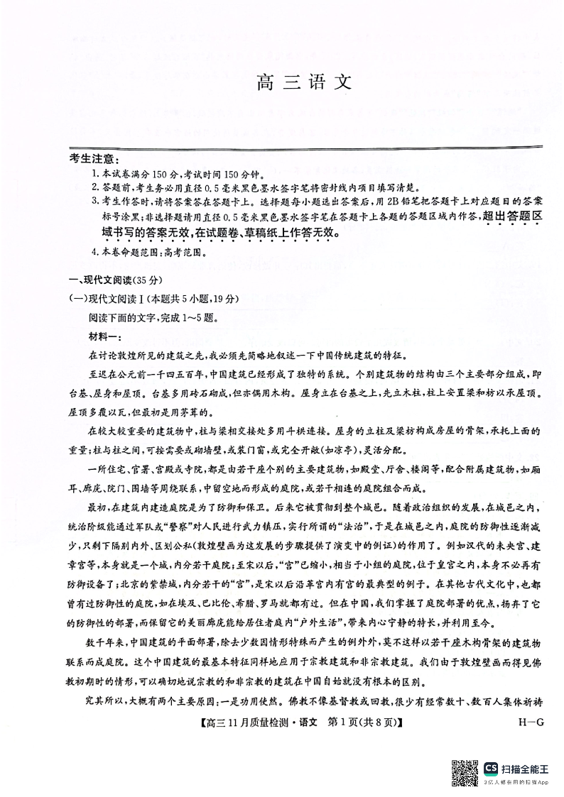 河南省许平汝名校2024-2025学年高三上学期12月月考语文