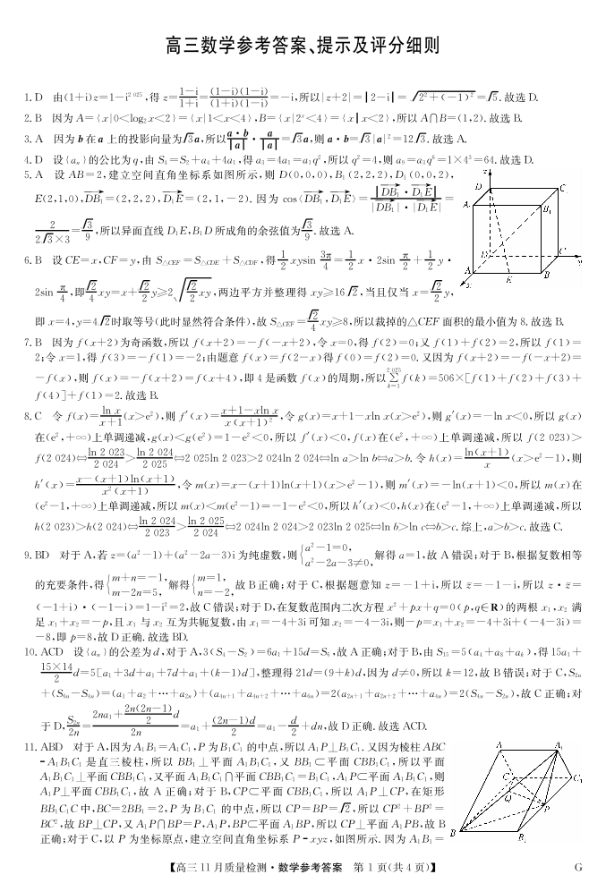 河南省许平汝名校2024-2025学年高三上学期12月月考数学答案