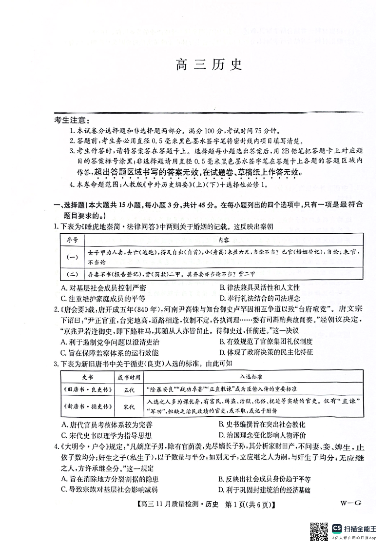 河南省许平汝名校2024-2025学年高三上学期12月月考历史