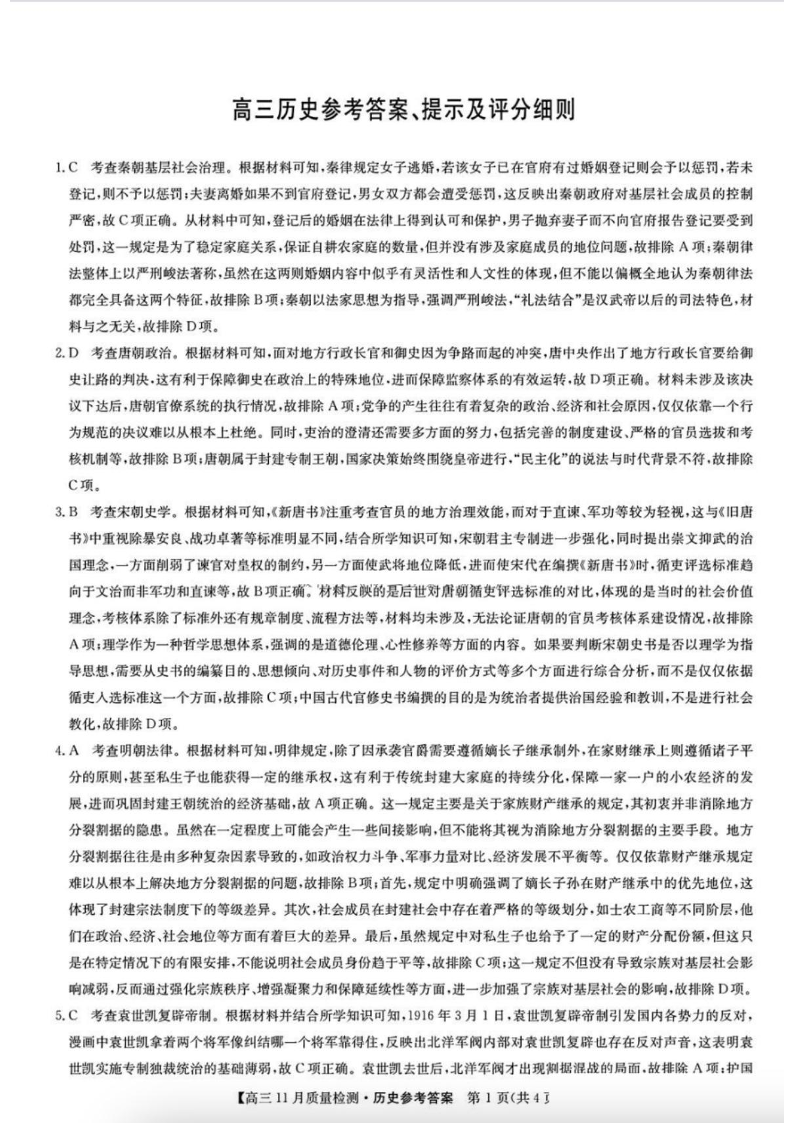 河南省许平汝名校2024-2025学年高三上学期12月月考历史答案