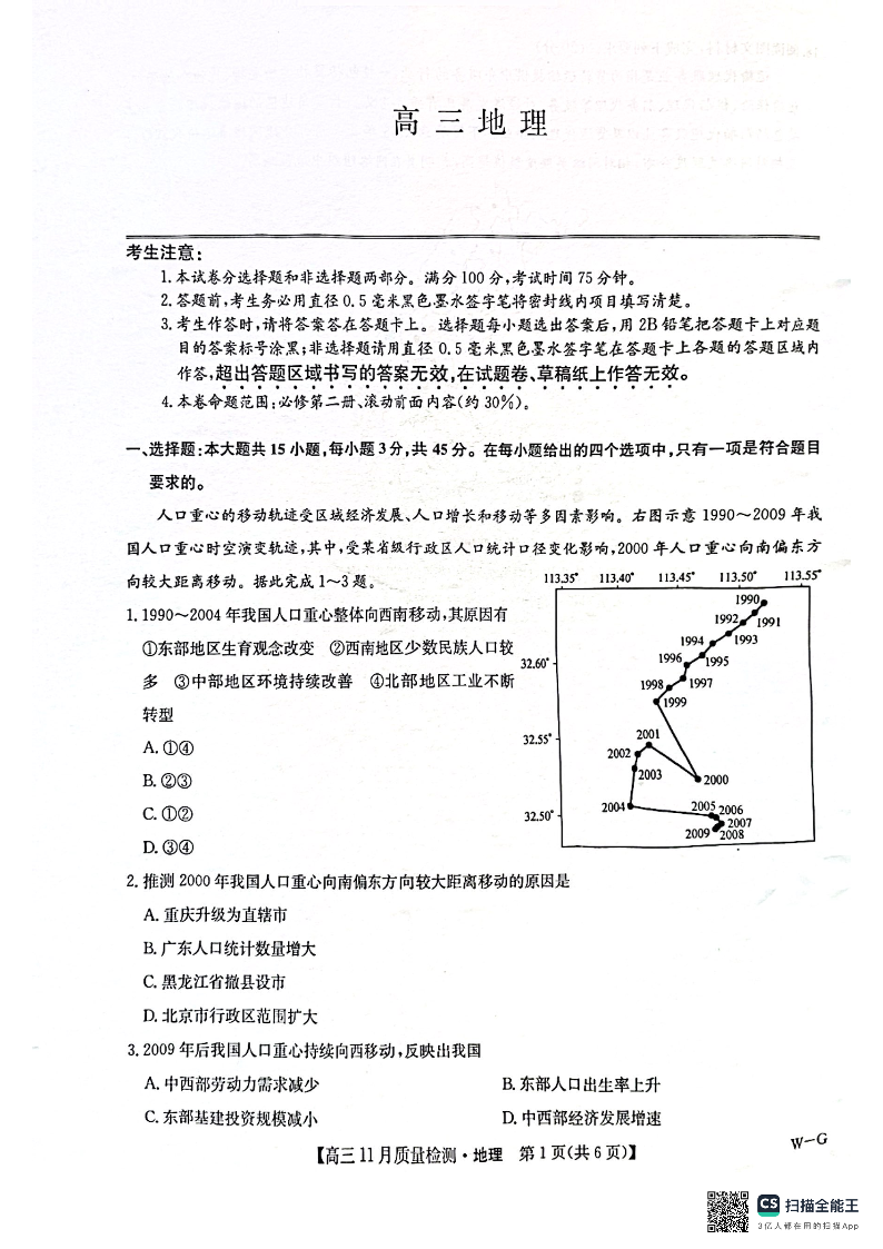 河南省许平汝名校2024-2025学年高三上学期12月月考地理