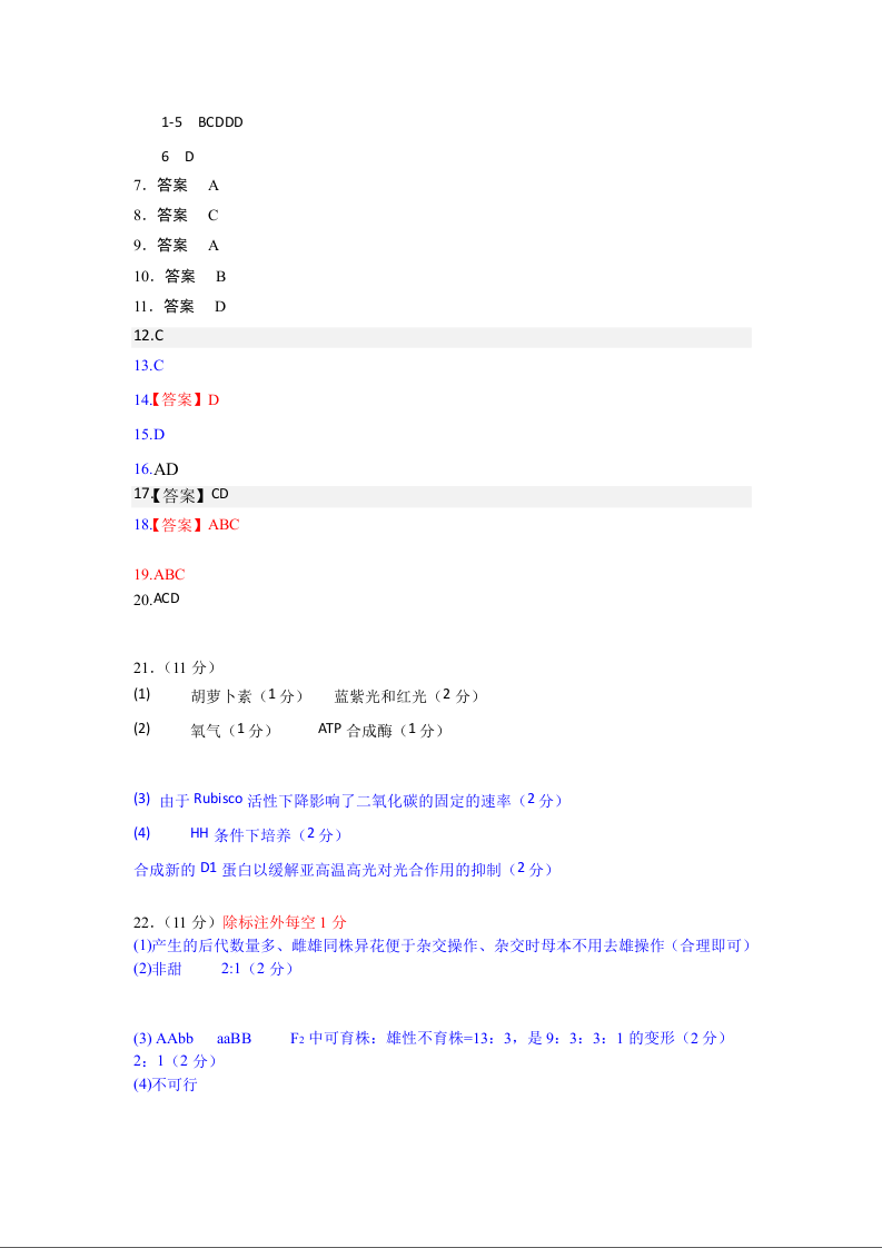 黑龙江省实验中学2024-2025学年度高三上学期第三次月考生物答案