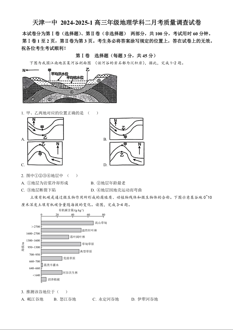 天津市第一中学2024-2025学年高三上学期第二次月考地理