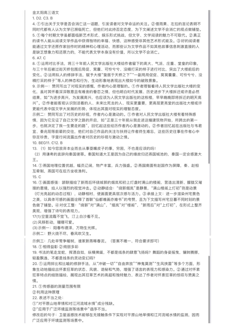 广东省部分高中2025届高三10月大联考语文答案