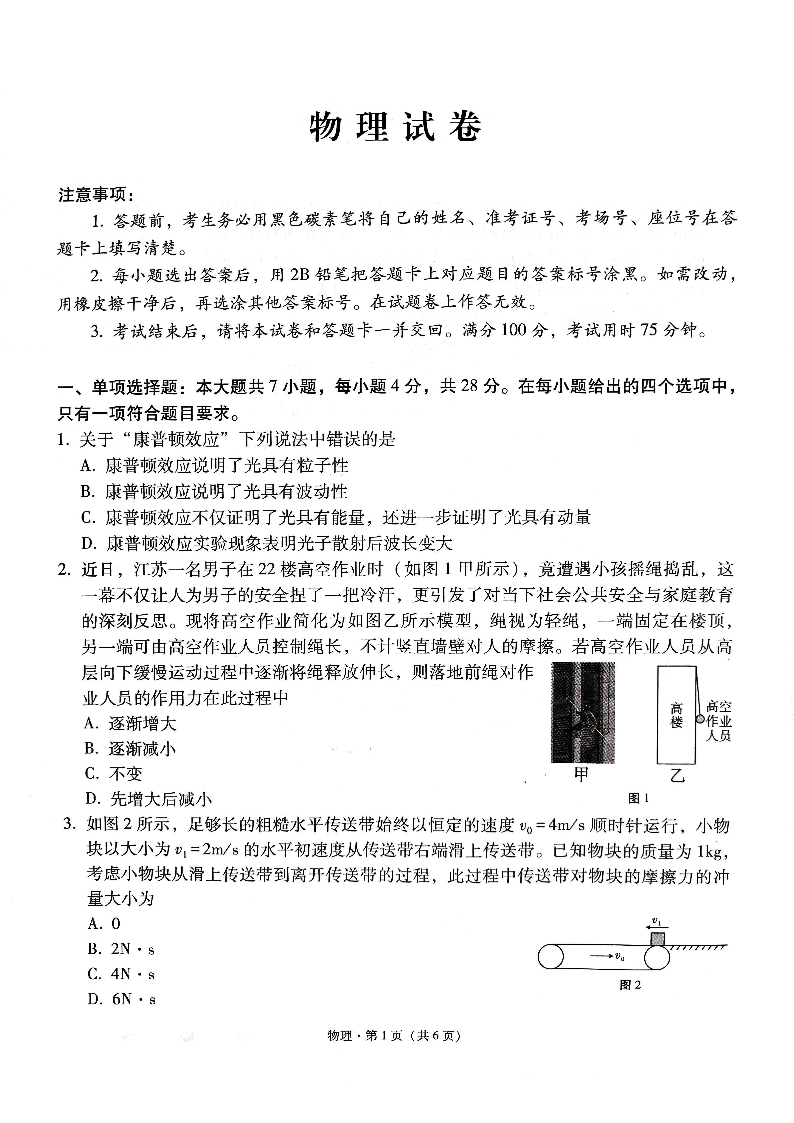 贵州省贵阳市第一中学2025届高三上学期高考适应性月考(二)物理