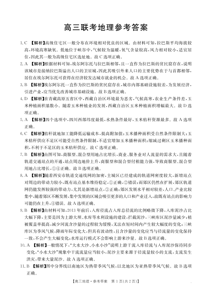 贵州省部分高中2025届高三上学期10月联考地理答案