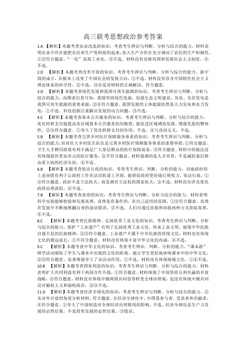 贵州省部分高中2025届高三上学期10月联考政治答案