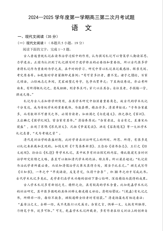 海南省文昌中学2025届高三上学期第二次月考语文+答案