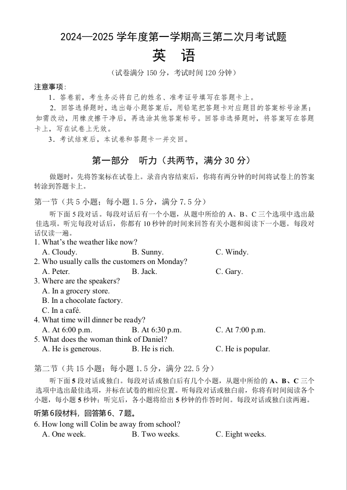 海南省文昌中学2025届高三上学期第二次月考英语+答案