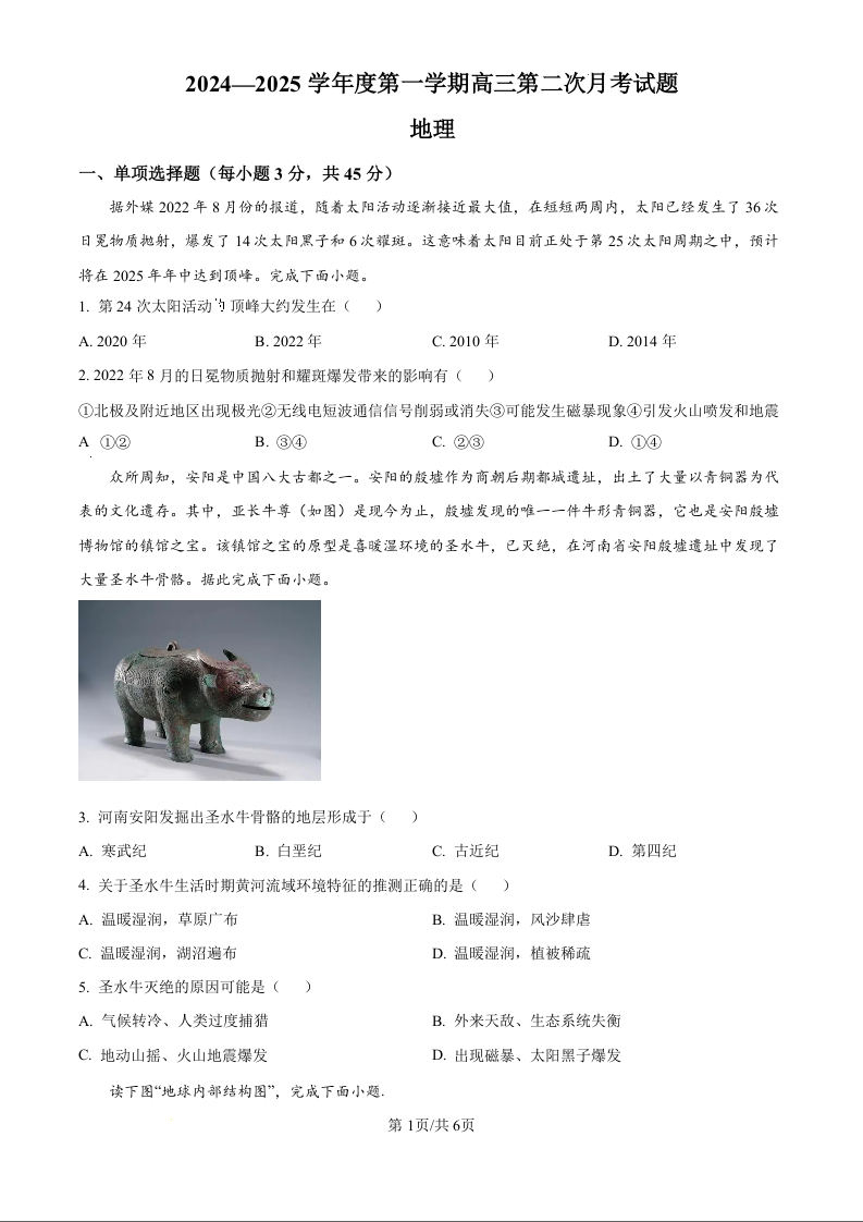 海南省文昌中学2025届高三上学期第二次月考(原卷版)