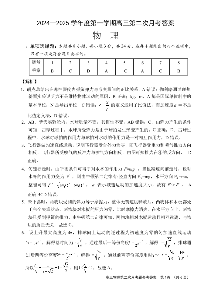 海南省文昌中学2025届高三上学期第二次月考物理答案