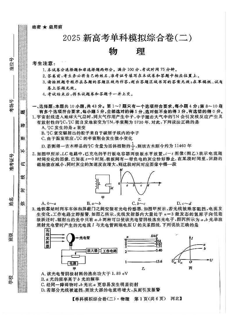 河北省2025届高三上学期新高考单科模拟综合卷(二)物理