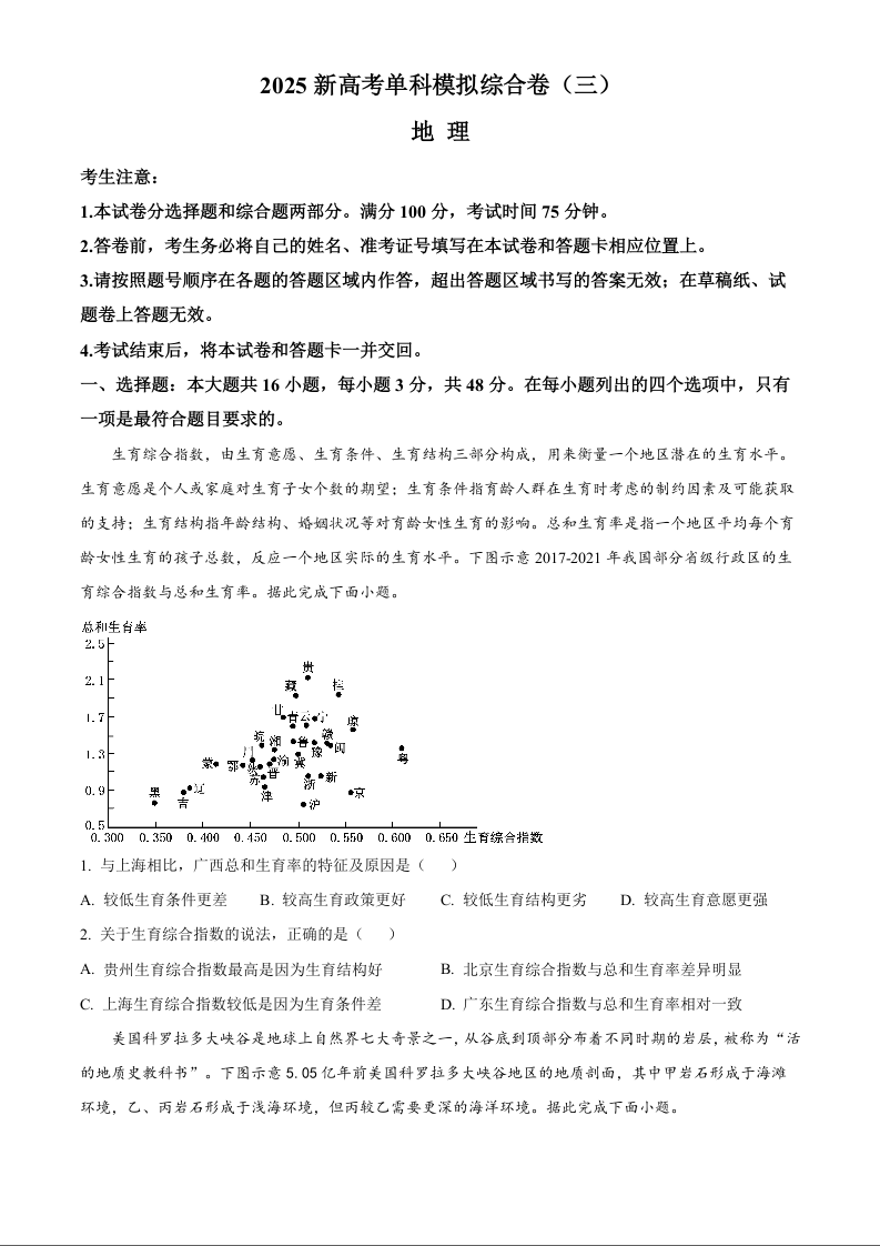 河北省2025届高三上学期新高考单科模拟综合卷(三)地理+答案