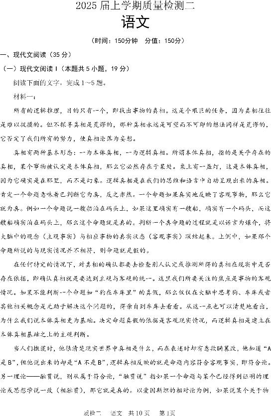 河北省部分学校2024-2025学年高三上学期第二次质检语文