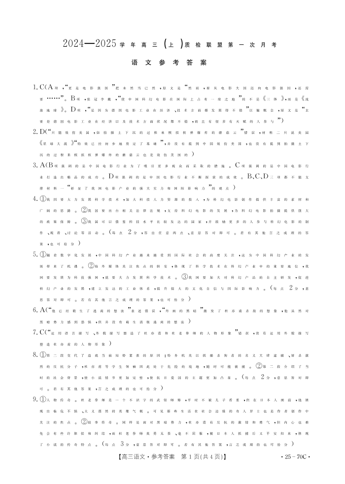 河北省邢台市2024-2025学年高三(上)质检联盟第一次月考语文答案