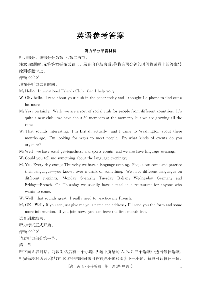 河南省部分高中2024-2025年高三年级联考(三)英语答案