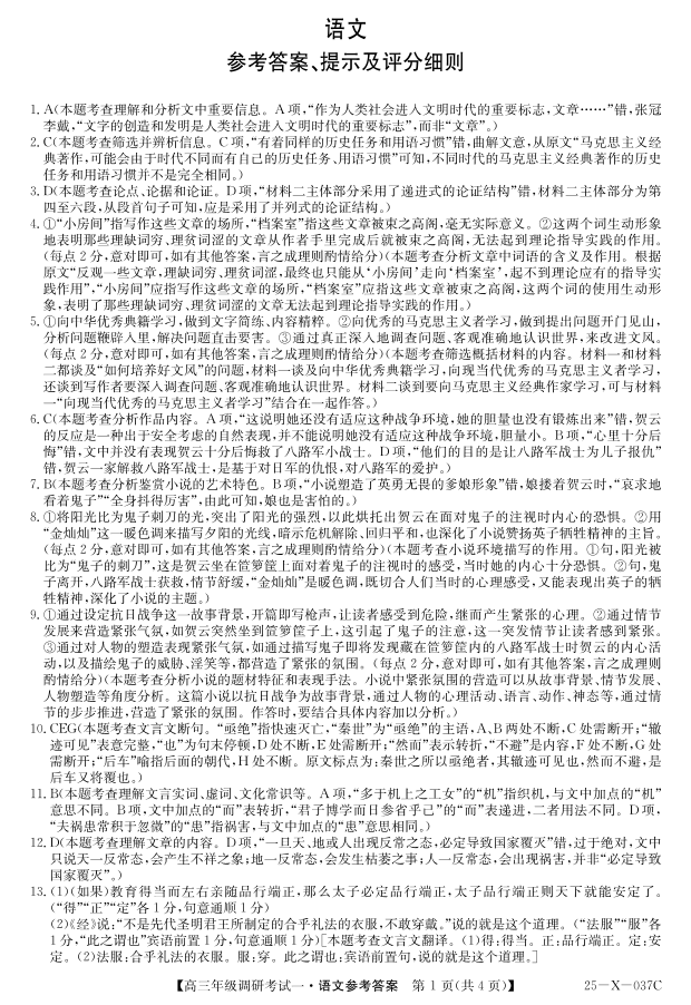 河南省新高中创新联盟TOP二十名校2025届高三上学期10月调研考试(一)语文答案