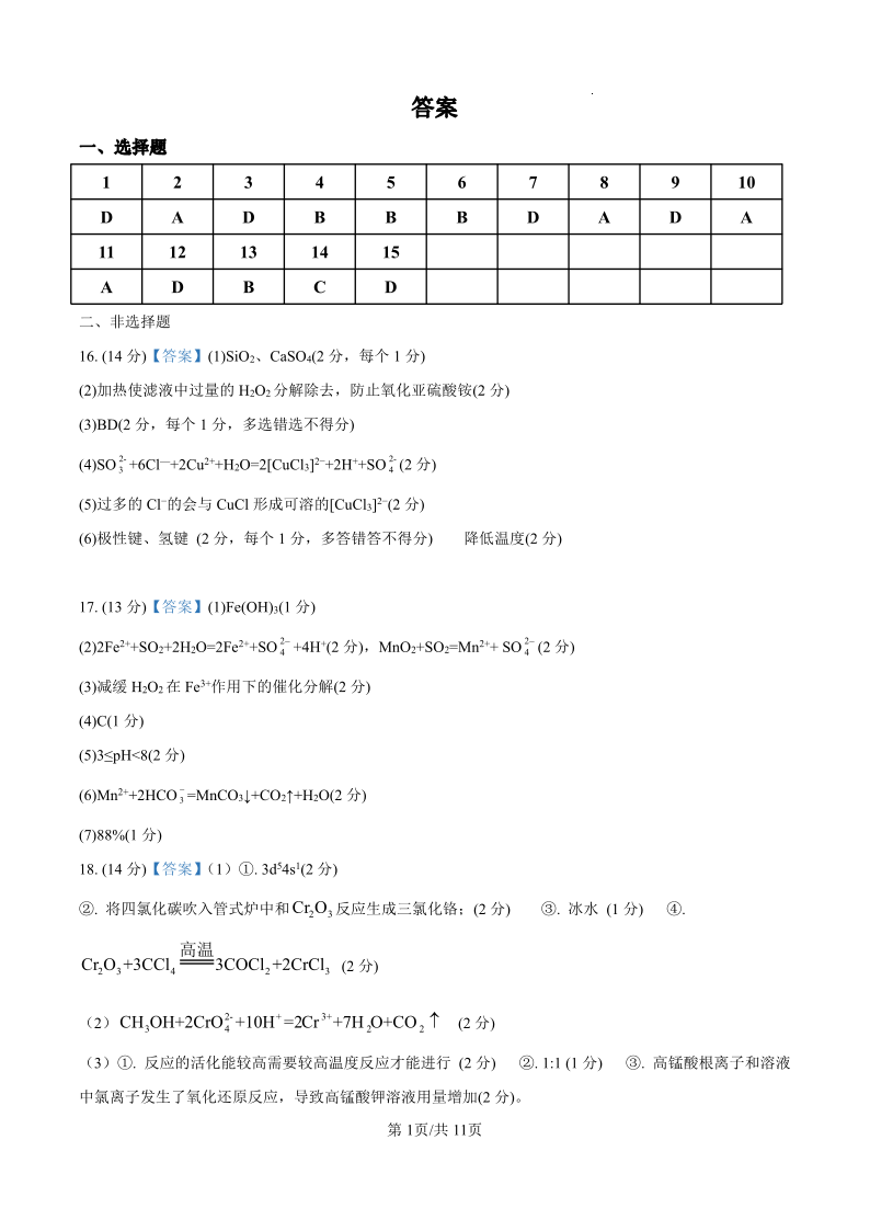 黑龙江省哈尔滨师范大学附属中学2025届高三上学期10月月考化学答案