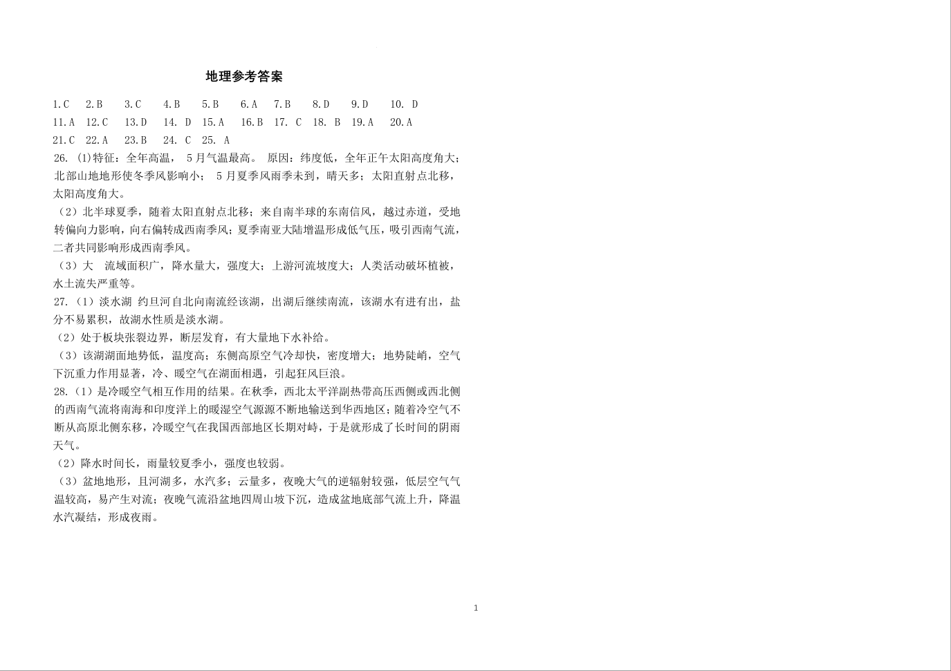 黑龙江省部分高中2025届高三上学期10月月考地理答案
