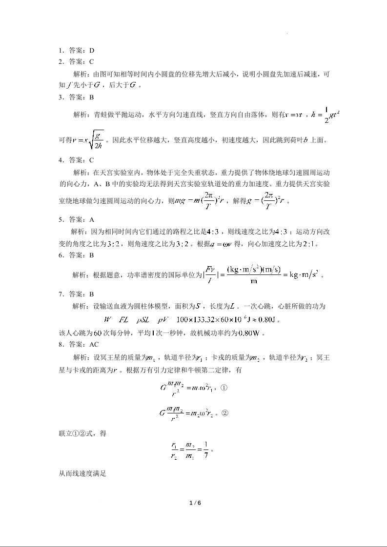 黑龙江省部分高中2025届高三上学期10月月考物理答案