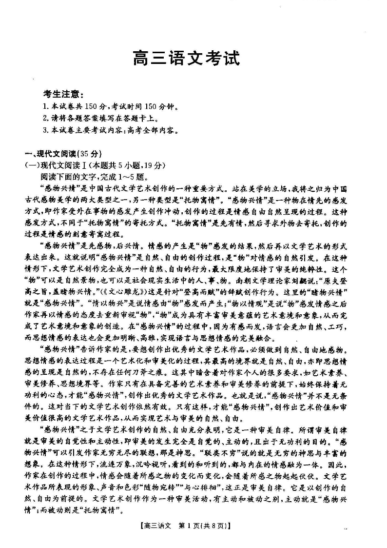 湖北省部分学校2024-2025学年高三上学期12月联考语文