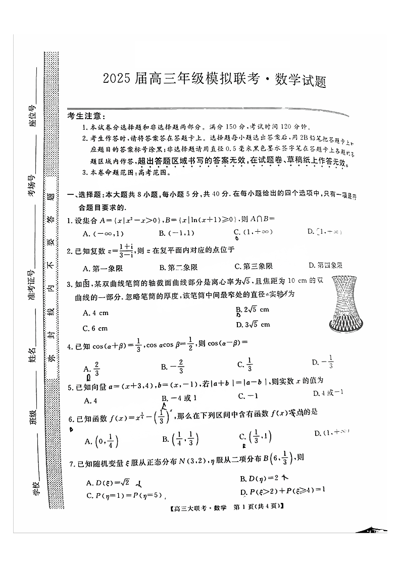广东省大湾区(正禾)大联考2025届高三上学期12月模拟联考数学PDF版含答案