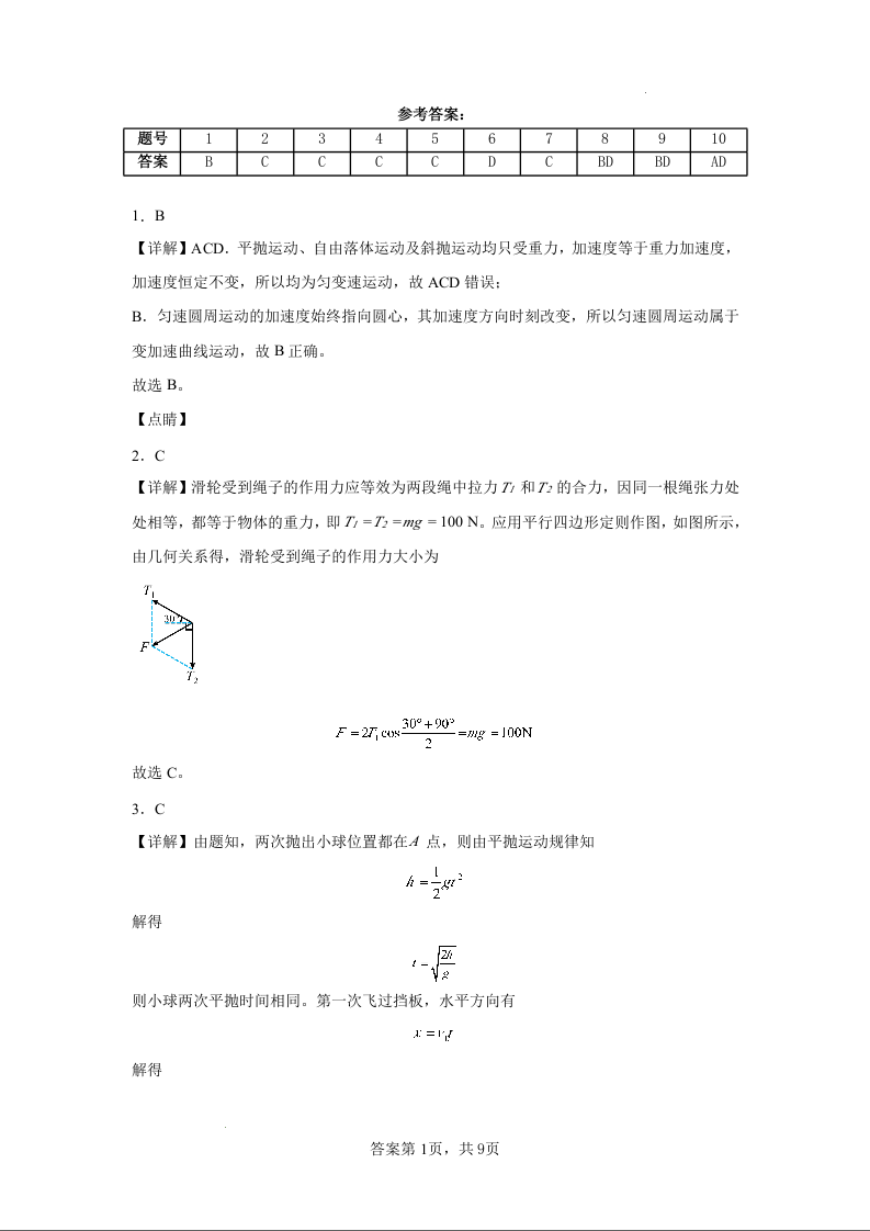 黑龙江省大庆市大庆中学2025届高三上学期10月期中考试物理答案