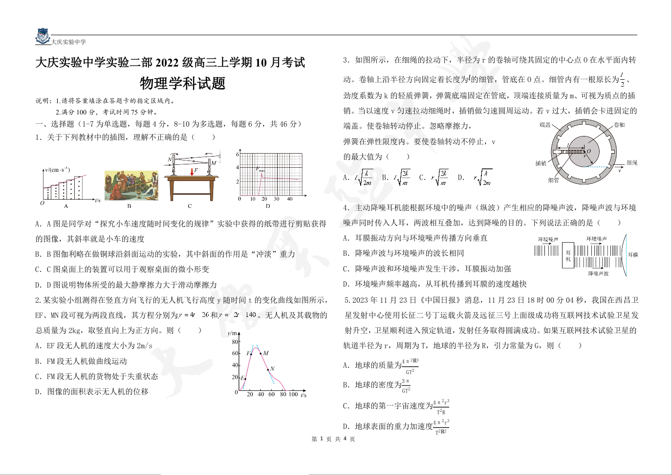 黑龙江省大庆市实验中学实验二部2022级高三下学期10月月考物理试卷