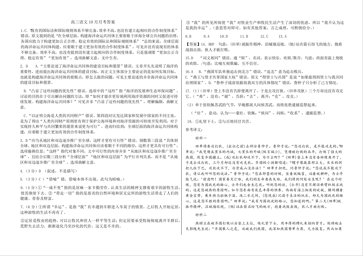 黑龙江省佳木斯市第八中学2025届高三上学期10月月考语文答案