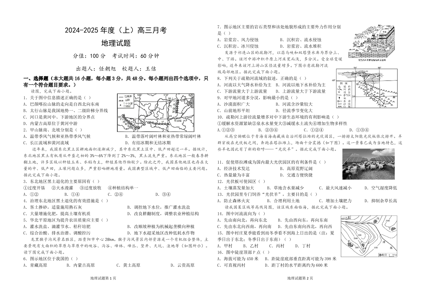 黑龙江省佳木斯市第八中学2025届高三上学期10月月考地理