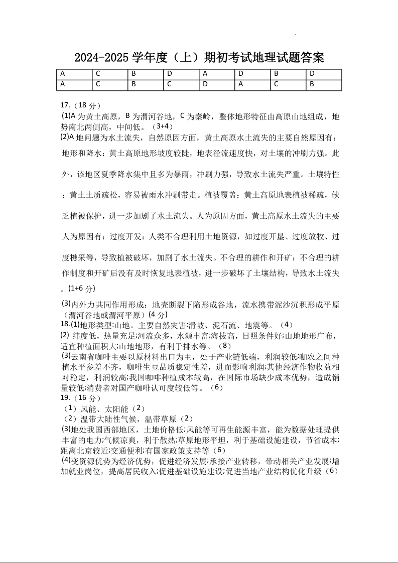 黑龙江省佳木斯市第八中学2025届高三上学期10月月考地理答案