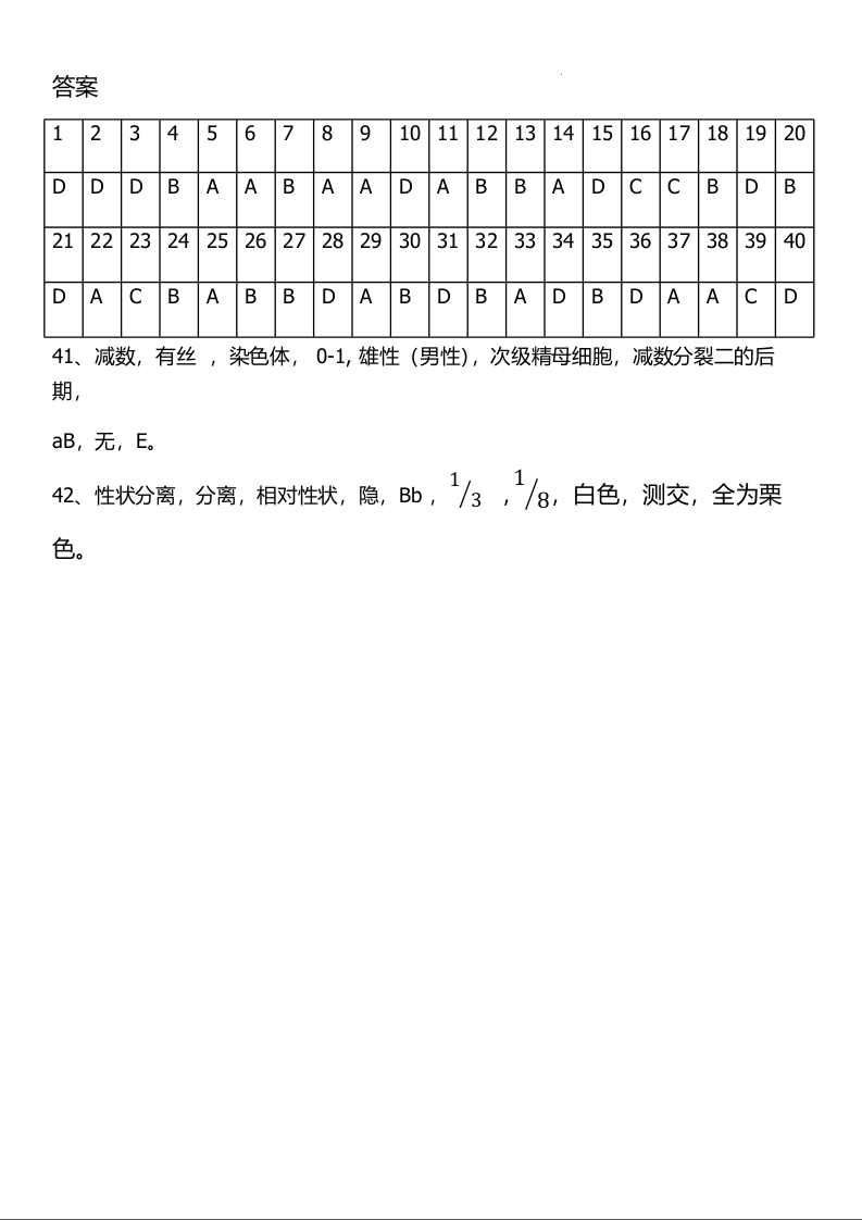 黑龙江省佳木斯市第八中学2025届高三上学期10月月考生物答案