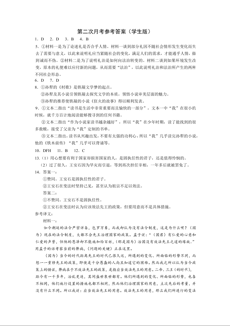 黑龙江省实验中学2024-2025学年度高三学年上学期第二次月考语文答案