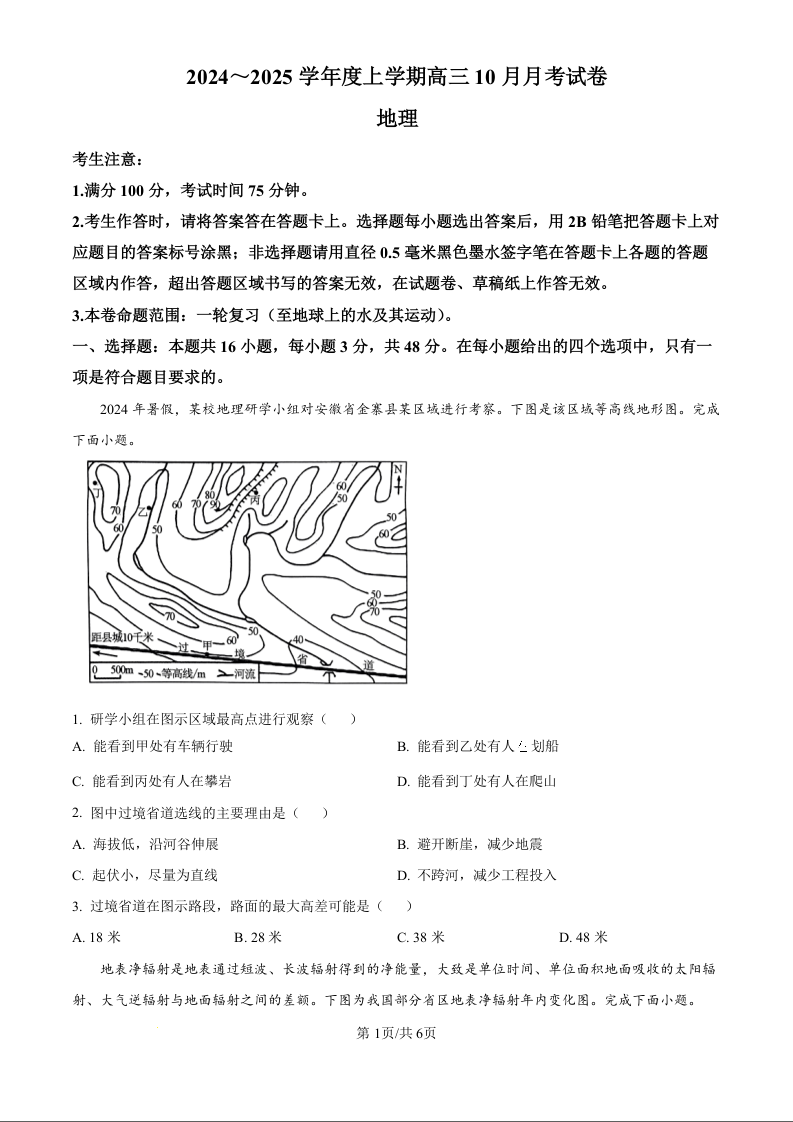黑龙江省绥化市绥棱县第一中学2025届高三上学期10月月考生物试题