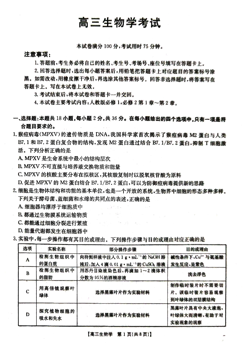 湖北省部分高中2025届高三上学期10月联考生物试题