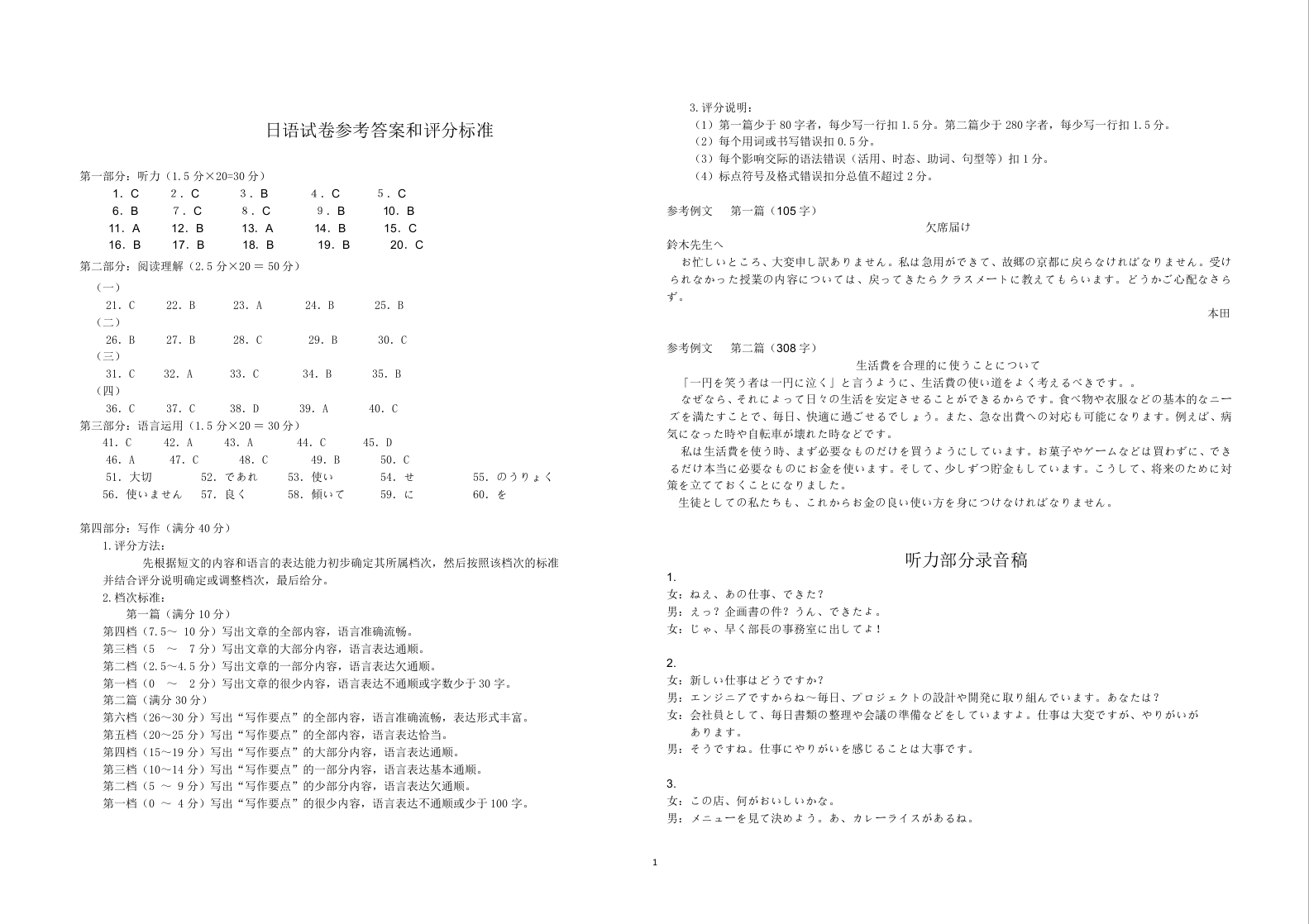 湖北省腾云联盟2024-2025学年度上学期10月联考听力原文+答案
