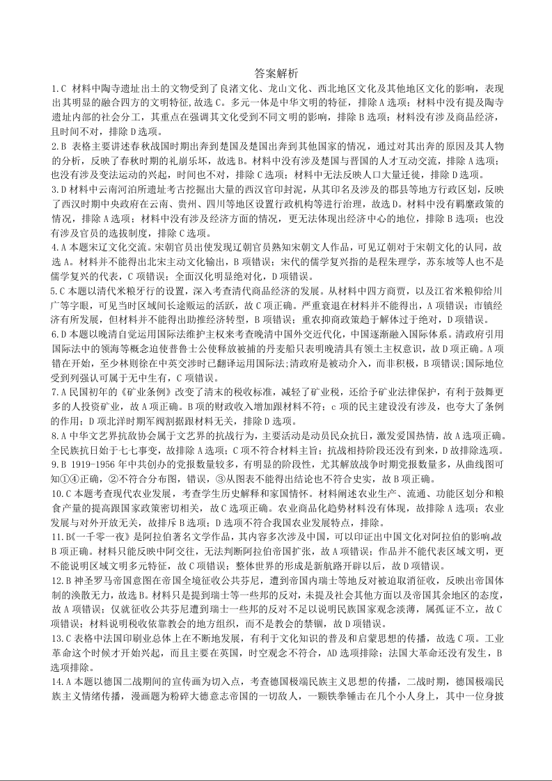 湖北省腾云联盟2024-2025学年度上学期10月联考历史答案