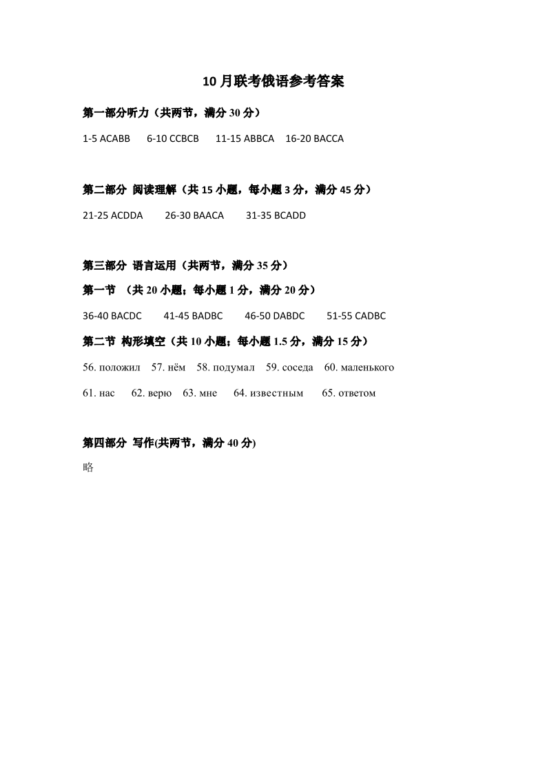 湖北云学部分重点高中联盟2025届高三年级10月联考俄语答案