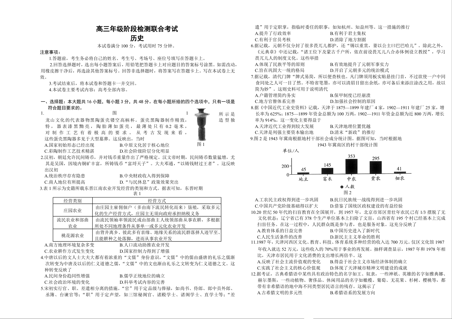 湖南省部分高中2025届高三年级阶段检测联合考试历史试题
