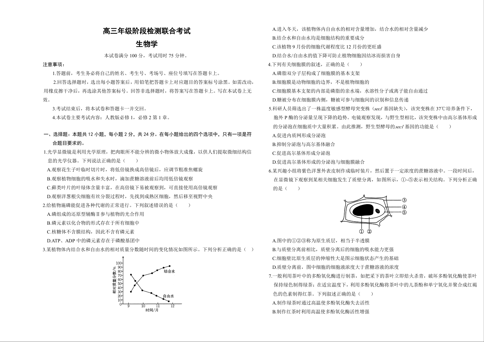 湖南省部分高中2025届高三上学期10月阶段检测联合考试生物+答案