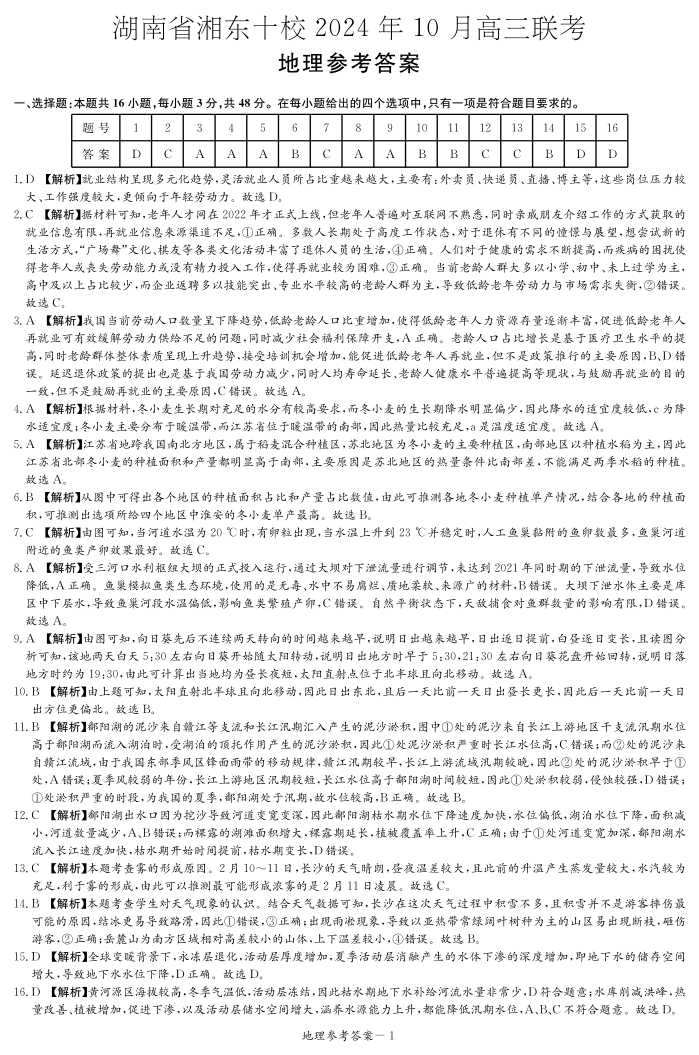 湖南省湘东十校2025届高三10月联考地理答案